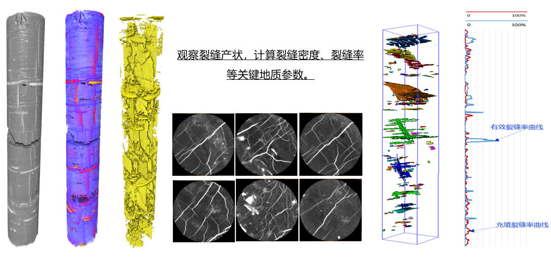 通过CT扫描,精确识别并提取全井段宏观孔缝洞,定量孔缝洞参数,为单井或井区提供数据支持,提升宏观孔缝洞评价的准确性和实用性。