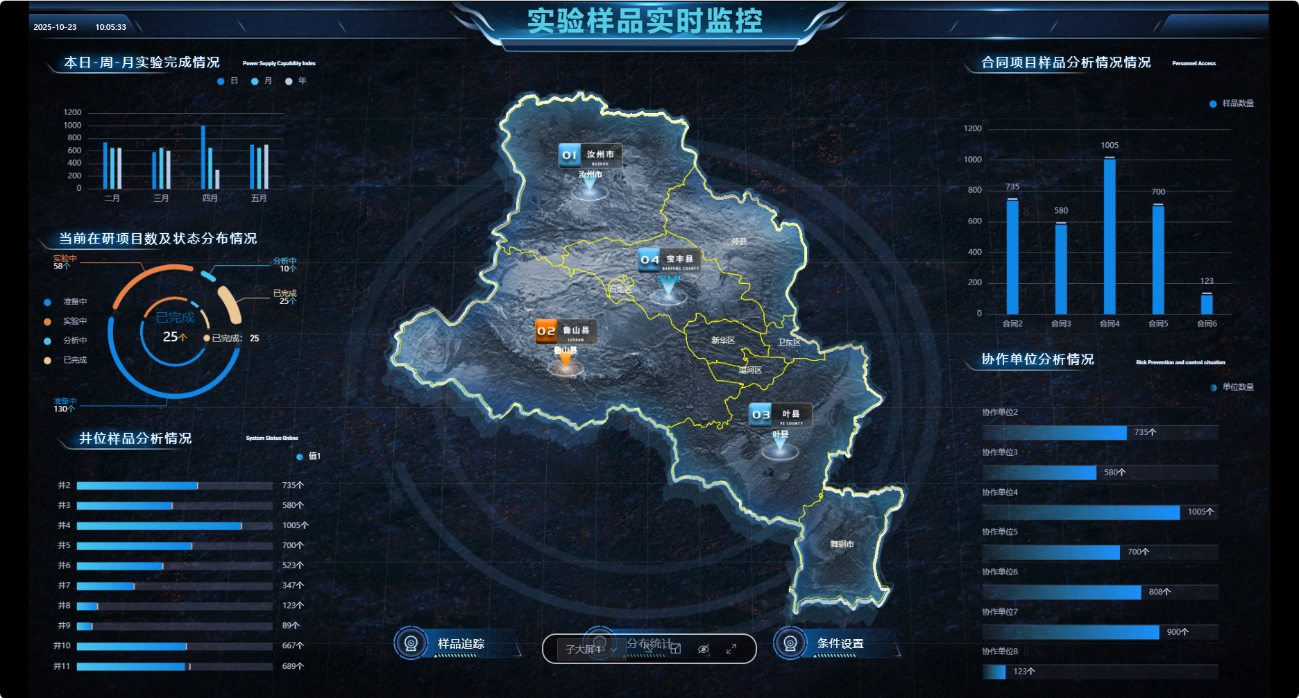 实时监控平台信息:注册人数、在线人数、部门统计、实验分类、井位数量、实验分析样品点数、图片、文档报告数据;