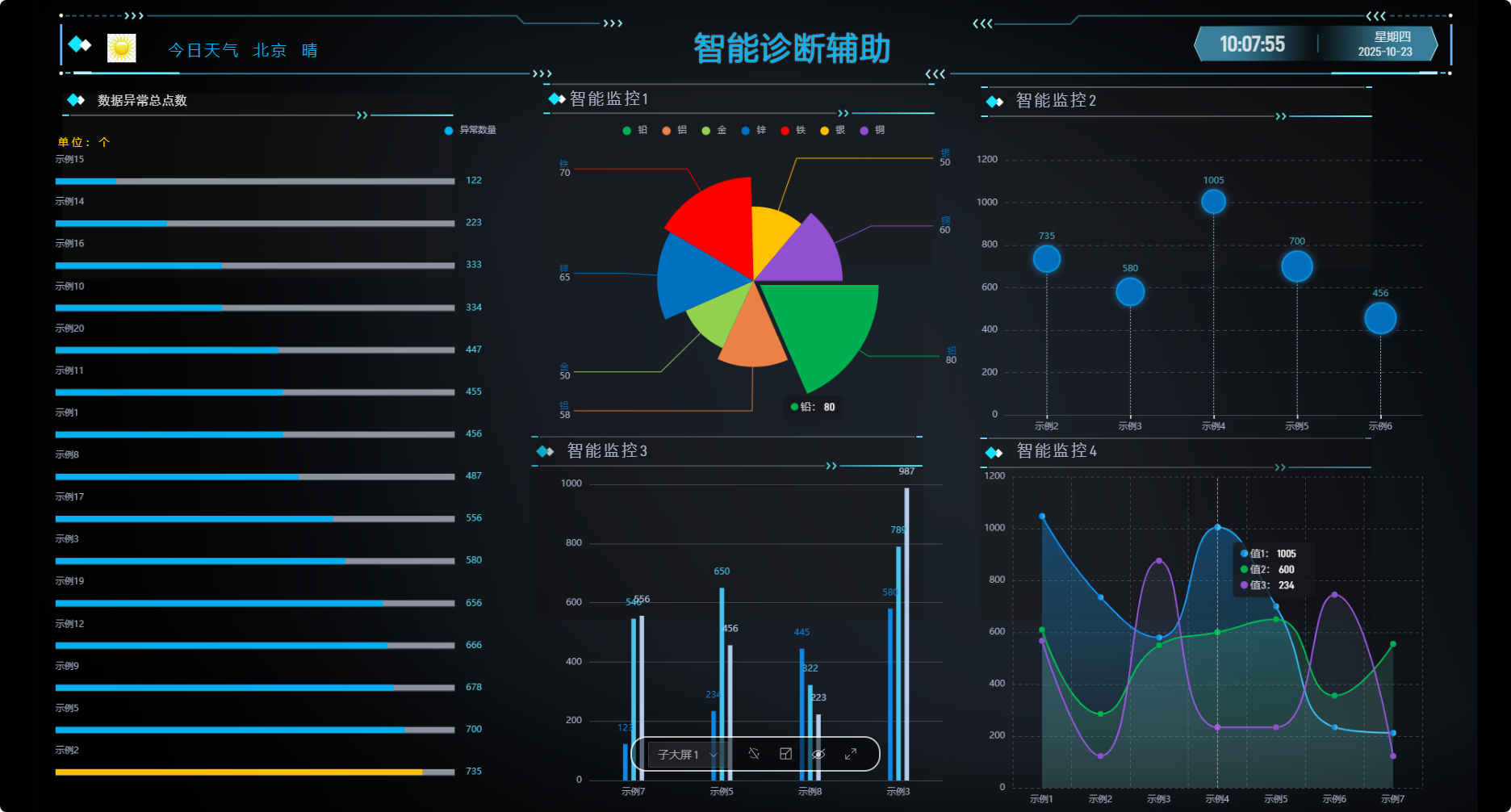 实时监控生产状态:部门生产完成情况、异常数据点警示;
